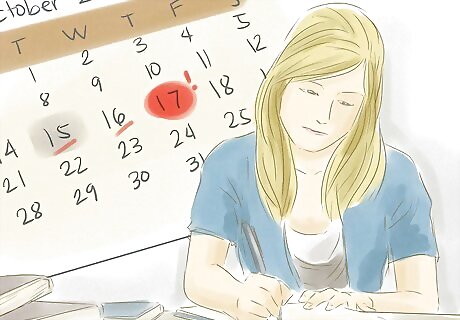 Make a schedule. This will go a long way in avoiding stress by making sure you don’t miss a deadline or forget an exam. Use a simple calendar app such as Google Calendar to lay out your schedule for the entire exam time. You can schedule and color code specific times to study for each exam. Be sure to give yourself enough time for other activities like chores and sleeping. A better organized schedule will make you feel in control of your time and decrease stress from having to remember everything in your head. When creating your calendar, schedule your most important tasks first - for example, things that cannot be moved or rescheduled, like the your exam times. Schedule your study time as well, and specify which exam you are going to be studying for. Give yourself plenty of break time, as well as time for de-stressing activities.