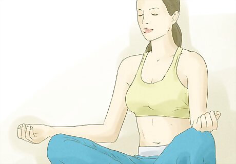 Do yoga. Yoga is the Indian practice of stretches and poses, as well as controlled breathing and meditation. Traditionally, yoga is used for spiritual enlightenment and exercise. Yoga can come off as somewhat intimidating at first, but don’t be afraid to try it. Basic yoga positions are easy to learn and are more or less variations of different types of stretches you might do anyway. Find a comfortable space to practice. The space should have enough room for you to move around and will ideally be quiet and free of distractions. Begin by doing some basic arm and leg stretches, followed by a sun salutation. Follow it up with some basic yoga poses like the down dog, cobra, forward bend, and star pose. Hold each position for 3-5 deep, mindful breaths.