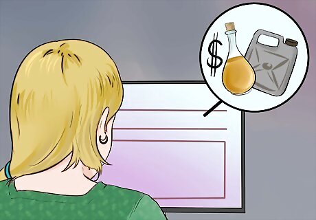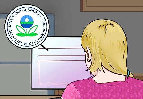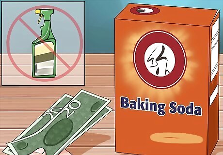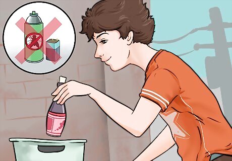 Use non-hazardous products. As a general rule, only buy what you need and consider alternatives when available. Instead of using a chemical drain cleaner, use strainers to catch the debris that may clog your pipes. Flush your drains weekly with hot water or warm vinegar. Use baking soda and a steel wool pad instead of using intense counter top cleaners. Consider using non-aerosol products like those with pump sprays. Instead of using an aerosol air-cleaner, keep an open box of baking soda in a room or create potpourri out of scrap orange peels.