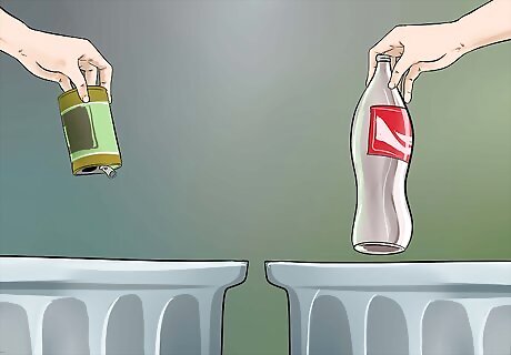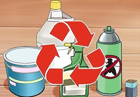 Recycle hazardous waste. You might be able to recycle some of your hazardous waste. Many sites will accept materials like batteries and used cellphones to be recycled on a daily basis. Be on the lookout for other recycling opportunities. Many schools and community groups will accept leftover paint supplies, and give them to the people who can still use them. Check with your auto garage if they’d accept used or spare fluids from your car. Some will even accept antifreeze and recycle it.