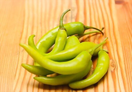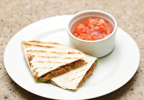 Eat local fruits and vegetables that typify the Mexican diet. This is warm weather produce that grows closer to the equator. The following are common kinds of produce found in Mexican food: Avocados are a large green, fleshy fruit that are native to Central America. The avocados may be sliced and served on tortillas, tacos or other dishes. It is most commonly mashed up along with onions, chilies and coriander (cilantro), and served as a dip or sauce. Chilies are a type of pepper that are used very commonly to flavor meats and dishes. Generally, the bigger the pepper, the less spicy it will be. The larger versions are often stuffed, as is the case with "chilies rellenos." The habanero is 1 of the hottest and smallest chilies that is often made into sauces. Jalapeños are also commonly served. Salsa, meaning sauce, is often made with tomatoes, onions, chilis and cilantro. The spiciness of the salsa varies greatly.