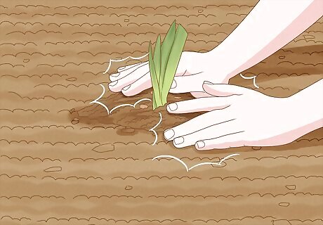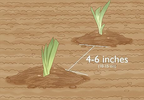 Space rhizomes 4-6 inches (10-15 cm) apart and make sure the fans point in the same direction. Some sources suggest spacing of one foot (30cm) or even two feet (60cm), especially for tall bearded iris. When you choose your spacing, decide how dense you'd like your bed to be, and how soon you would like to divide your irises again.