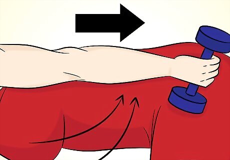 Get a hand-held weight. You can use a disc weight but the most ideal tool is a hand-sized dumbbell. Chose a weight based on your level of strength. Start with a weight that feels easy and only increase the weight in small increments as you gain strength.