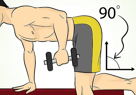 Position your back. Bend at the waist so your back and legs are at a roughly 90-degree angle. Try to keep your back straight during the exercise.