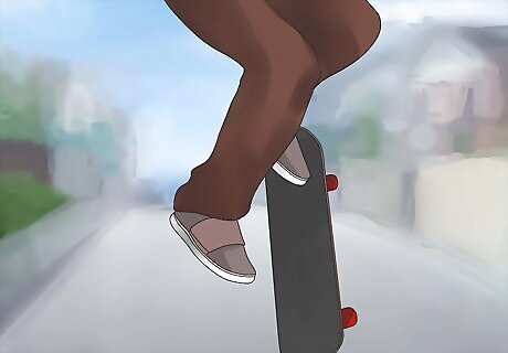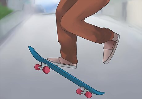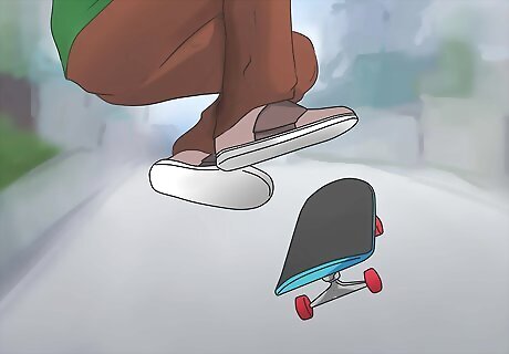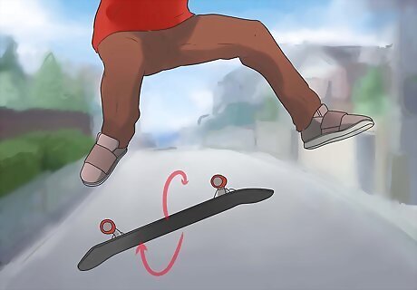 Jump up and back. As you pop into the air and move your front and back feet to flip and push the board, you will also need to be jumping up and backwards. This trick requires good height so it is important to jump high. If you are catching the board with your feet while in the air then you may not be jumping high enough. Many people have trouble with landing too far forward on the board so jumping back will help solve this issue.