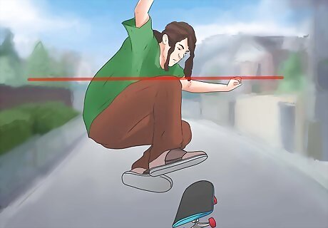 Bend down and stay centered. Bending down helps you to get additional pop while staying centered will help you complete the trick and land properly.