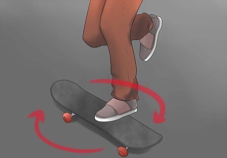 Learn how to complete a shove it. The shove it is similar to the ollie except you scoop the board into a turn rather than popping the board up. Keep one foot at the back of the board and the other in the middle. This is also important to learn before trying the varial heel flip. Lift up with your front foot and scoop with your back foot. You will need to get the board turning with your back foot by scooping the board backwards. Allow the board to turn 180 degrees so that the front becomes the back and the back becomes the front of the board. Land with both feet on the board evenly.