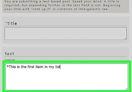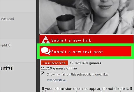 Click Submit a new text post. It’s in the right column of the subreddit. The exact text on this link may vary. You can also insert bullets into a comment. If you want to do that, go to the post, then click the comment box.