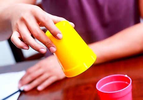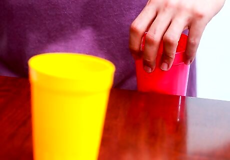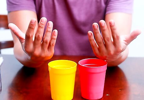 Gather your audience. A magician is nothing without her audience, so gather a few people around. Have them sit in front of you, if possible at eye-level with the cups, not above the cups so that they can see in.