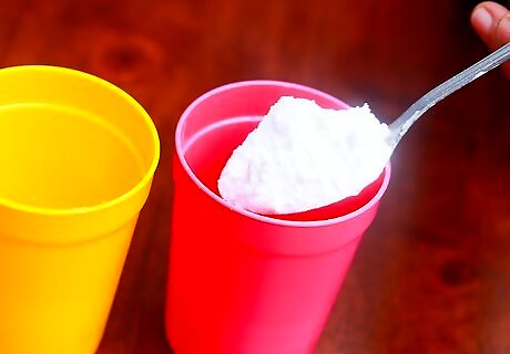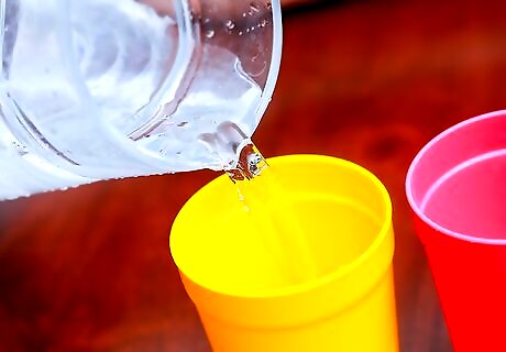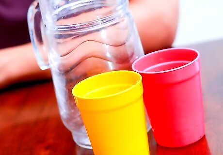 Collect the materials. In addition to the water gel powder, you will also need a small pitcher of water and 3-4 cups that are not see-through. A cup that has a narrower mouth than the bottom works best, but regular colored plastic cups may also work.