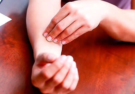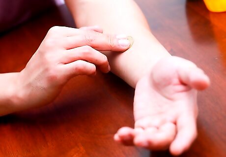 Rub your left hand against your right forearm. Pretending that the coin is in your hand, rub your left hand against your right forearm.