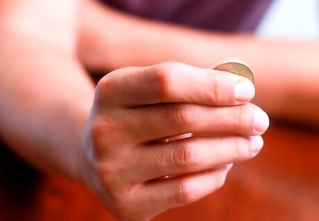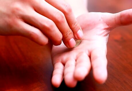 Pretend to transfer the coin to your left hand. Pretend to put the coin in your left hand, but really keep it concealed in your right hand.