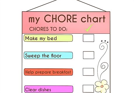 Make lists or chore charts. Write down specific tasks for your child to accomplish. Add a column for them to check off when they've completed each task. To make it more fun and engaging, ask your younger child to decorate their list or chart. Upload a task list to your tween or teen's cell phone. Buy stickers for young children to put in the check boxes when each task is complete. Allow your child to choose the sticker as a reward. Draw pictures to represent the tasks for a toddler. You could also cut and paste pictures instead of drawing. Laminate and post the chore chart in an area where your child will see it often. Use a dry-erase marker to check off completed tasks, or let young children move hook-and-loop fastener images of tasks to a “completed” column.