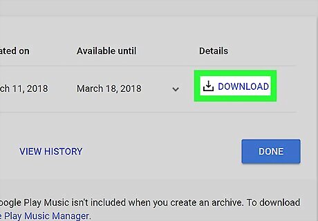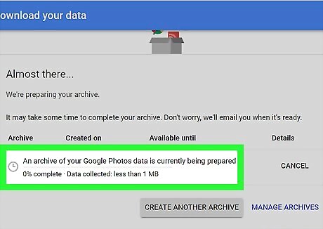 Wait until your archive is created. Google will compress you photo albums, and prepare your download. A blue DOWNLOAD button will appear when it's ready.