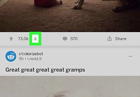 Tap the "down-arrow" icon below the post or comment. Below a post's title or below the comment, tap the down-arrow icon and it will turn blue indicating you've cast your downvote.