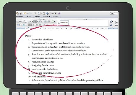 Find sample coaching contracts. Before sitting down to draft your own contract, you should look for sample contracts online. There is no standard “one size fits all” coaching contract. Instead, contracts differ depending on your school and whether the coach is getting paid. For example, contracts for college coaches are very extensive. The compensation is usually complicated, and college coaches have a long list of duties. If you are drafting a contract for a college coach, you should see a lawyer before beginning. By contrast, a volunteer coaching contract could be much shorter—about a page in length. You should try to find contracts which can serve as a guide as you draft your own. If you are a high school, then ask other high schools in your area if you can see a copy of their contract to use as a guide.