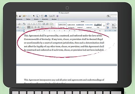Add typical boilerplate clauses. Every contract contains certain provisions, regardless of the content of the contract. These provisions are called “boilerplate,” and you should have them in your coaching contract as well. You will want the following provisions: Choice of law provision. If there is a lawsuit, the judge will need to interpret the contract according to the law of a state. You can determine the state. Typically, schools choose the state where they are located. For example: “This Agreement shall be governed by, construed, and enforced under the laws of the Commonwealth of Kentucky.” Severability clause. You should state that the contract will remain in effect even if a judge finds one provision illegal: “If any term, clause, or provision shall be deemed illegal or unenforceable by a court of competent jurisdiction, then such a determination shall not affect the legality of any other term, clause, or provision; and this Agreement shall be construed and enforced as if such term, clause, or provision had not been included.” Merger clause. You also want to state that the contract contains the entire agreement: “This Agreement incorporates any and all prior oral agreements and understandings of the parties with respect to its subject matter.”