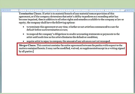 Add a merger clause. This clause states that the contract contains the entirety of your agreement. Any prior agreements are merged (and superseded) by the written agreement. You want this clause so that the artist doesn’t sue and claim that you had a prior oral agreement that isn’t included in the contract. A sample merger clause might read: “This contract contains the entire agreement between the parties with respect to the matters contained herein. It may not be modified, waived, or supplemented except in a writing signed by all parties.”