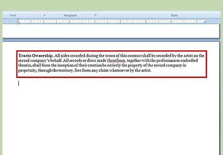 Format the document. You want the contract to be easy to read, so make sure that you set the font to a comfortable size and style. Times New Roman 12 point is fairly standard. You can also play around with bold and larger font sizes if you want to emphasize certain portions of the contract.