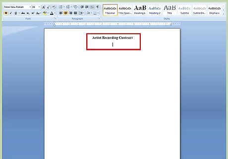 Add the title. At the top of the first page, you should center “Artist Recording Contract” between the right- and left-hand margins. You can make the title a little larger than the rest of the type.
