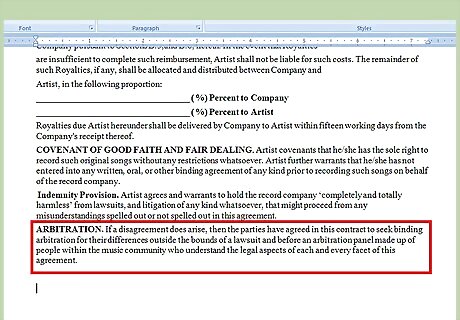 Insert a dispute resolution clause. You can agree to arbitrate any disputes that arise under this contract. Arbitration is like a trial except it is private. You present your case to an arbitrator instead of a judge. Alternately, you could include a provision that you will mediate any dispute with the help of a mediator. “If a disagreement does arise, then the parties have agreed in this contract to seek binding arbitration for their differences outside the bounds of a lawsuit and before an arbitration panel made up of people within the music community who understand the legal aspects of each and every facet of this agreement.”
