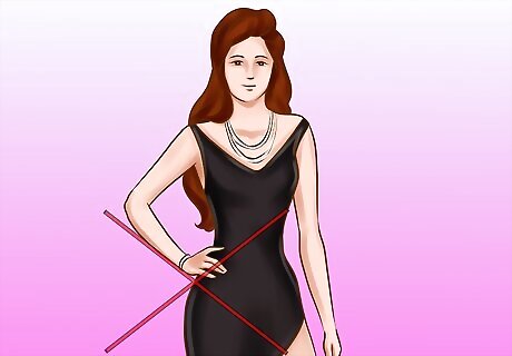Avoid looking too vampy or flirtatious on a first date. You don't really know each other well romantically yet and being suggestive or provocative on a first date is a definite no-no. Worst still, looking too vampy can cause your date to relegate you to the one-night date rather than treating you as a serious long-term prospect. There will be plenty more time to see more of you as the dates progress, and if the date doesn't work out, well then, he didn't deserve to see anything more! Clothing to avoid on a first date includes: Anything too low cut, low slung. If you wear a low-cut top, don't pair it with a short skirt, or vice versa. Instead, if you choose to wear a sexy piece of clothes, pair it with something casual. One slightly suggestive item of clothing is more than sufficient; don't ruin it by making an overall statement. Your butt sticking out of your jeans. He doesn't need to see your underwear yet, in any shape or form. A tummy roll over your jeans. Unpleasant and unlikely to garner further interest no matter how much you think it's your right to dress this way. Save it for non-date occasions. Short, figure-hugging clothing. The shorter it is, the less appropriate it is for a first date. If you wear a fitted top, balance it with a more relaxed bottom. Lace-up tops, bodices that evict your bust, anything see-through.