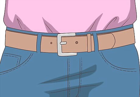 Buy a classic leather belt. Look for a brown or black belt with a silver or gold buckle for some timeless polish during the week. You can also use one to dress up your jeans and T-shirt on the weekend or pair with a button-up on casual Friday. Try an interesting buckle shape, such as a circle, to add a twist to your timeless look. Avoid novelty buckles, such as superhero styles, that are better suited to a younger crowd.