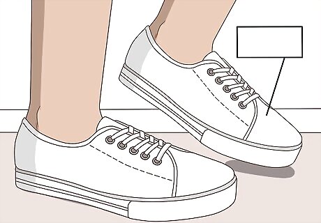 Try a clean pair of simple white sneakers. Buy a pair of plain white sneakers with a flat sole. Opt for a style without brand logos on the exterior that looks more like a lounging shoe than an athletic shoe. These shoes can pair with khakis for weekend errands or a little black dress for a casual twist. While you can try sneakers in other neutrals, white really is the most versatile. Black sneakers may be too eye-catching with some looks.