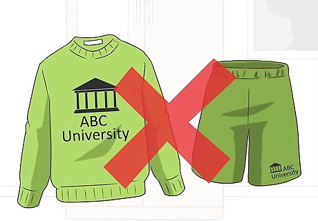 Store your collegiate wear. Put your fraternity or sorority sweatshirt away, as well as any pants or shorts that have team names written on the behind. While these items may hold memories, they imply you haven’t moved on since that period of time. Try a solid crew-neck sweatshirt with skinny jeans and white sneakers for a cozy casual look.