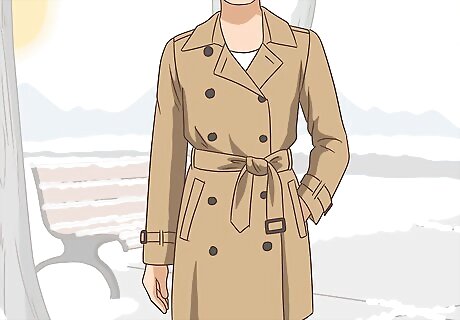 Try a classic trench coat. Look for a neutral-colored trench coat with a belt. Khaki is a classic color. Choose a trench that is lightweight and waterproof, so you can layer up and look chic on rainy days. For a different look, try a trench in navy or olive.