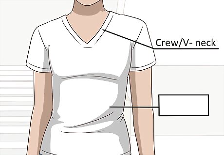 Buy a polished white T-shirt. Look for a T-shirt in a classic cut, such as a crew or V neck. Opt for a heavy cotton fabric that will wash well but have more shape than an undershirt. It’s best to wash your whites together so they keep their bright white color. Pair your white T-shirt with any casual clothes for a classic look. Try jeans, a trench coat, and some heels for a polished look on the go. For a masculine look, pair a white T-shirt with a herringbone blazer and dark jeans.