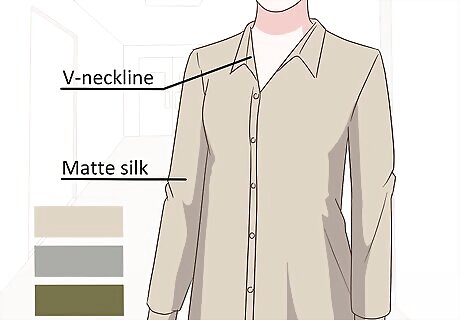 Buy a neutral, high-quality silk blouse. Look for a silk blouse in a light, neutral shade with a classic V neckline. Look for a matte rather than shiny silk for a look that is more polished than sexy. If the blouse has buttons, make sure they lay flat when fully buttoned, particularly if you have a larger bust. Try tucking your silk blouse into a pencil skirt or wearing it with slouchy boyfriend jeans and white sneakers.