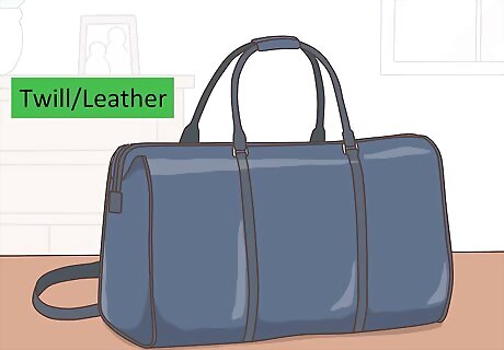 Invest in a polished weekender bag. Select a chic overnight bag large enough for a weekend away. Look for classic materials, such as twill or leather, that will hold up even if you have to check them on the plane. Sophisticated grays and blues won’t look dirty even if they get scuffed up. Avoid cream or white bags, which show wear easily. Add a feminine touch by selecting a style with metallic buckles or loop a scarf around the handle.