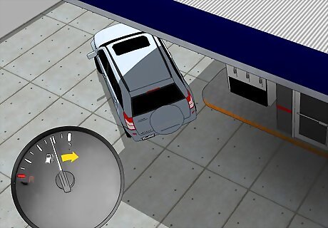 Keep your gas tank at least half-filled all the time. This is important to make sure you have enough gas during unexpected storms, and also to prevent your gas line from freezing. If your tank dips below half, top it off so you always have enough. If you're going on a longer trip, it's best to make sure you tank is full before leaving. Keeping enough gas in your car is also very important if you get stranded during a storm. You'll be able to run the car every so often to stay warm. If you drive an electric or hybrid car, make sure you keep it plugged in so you always have a full charge.