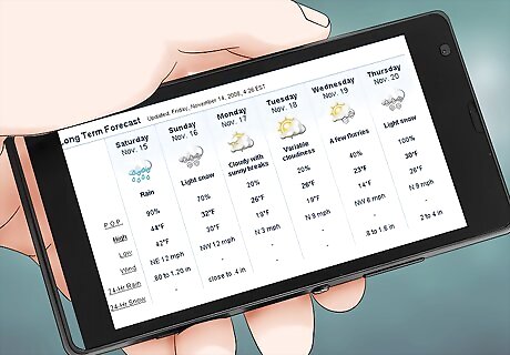 Check the weather before you drive anywhere. If you're planning on driving in the winter, especially a long distance away, check the weather. This way, you won't get caught in an unexpected storm. If the weather looks very bad, it's best to avoid driving if you can. Remember that the weather can change very quickly in the winter, and it could start snowing even if this wasn't in the forecast. That's why having your car prepared is so important.