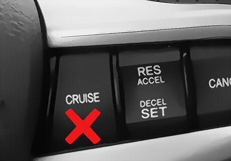 Avoid using cruise control. Cruise control can be a relaxing way to drive. However, during winter weather, you shouldn’t use the cruise control at all. This takes the acceleration and deceleration out of your control. On slippery surfaces that have snow, ice, or sand, this may cause you to slide or lose control of your car.