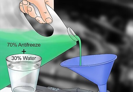 Top off your antifreeze. Antifreeze is important to keep your car running during the winter. Pop your hood and check the antifreeze tank. If the levels are low, add more until the antifreeze reaches the fill line in your tank. Check your manual for specific antifreeze type recommendations.