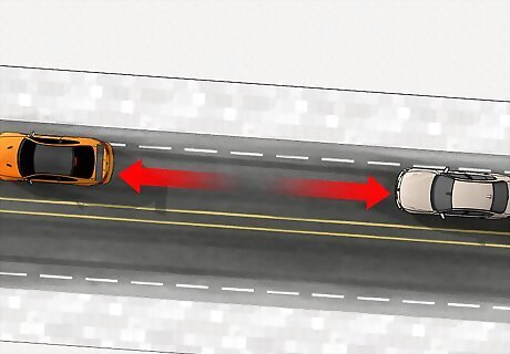 Leave 5-6 seconds of space behind other vehicles. Even if you're going slow, it can still take some time to stop on an icy road. If you're following other cars, leave at least 5-6 seconds of following distance. This gives you plenty of time to stop safely. If you want to check how closely you're following someone, look at something on the side of the road up ahead, like a telephone pole. Start counting when the car ahead of you passes it, and stop counting when you pass it. The number of seconds is how closely you're following that car. If you're unable to count your following distance, a good general rule is doubling the amount of space you usually leave when you follow other cars.
