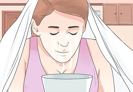 Inhale steam in order to soothe and hydrate your throat. Using a home steamer (available in most supermarkets and drug stores), you can inhale steam through your nose or your mouth for about 10 to 15 minutes at a time, 4 to 5 times per day. The key is to take in deep breaths and then breathe out slowly. This will help to soothe and hydrate your throat as well as helping to dilate your blood vessels. Dilation of blood vessels will help drugs act faster, as well as provide better oxygenation to all the tissues in your body which will indirectly help relieve your symptoms. You might remember from your high school biology classes that blood transports oxygen around the body, and oxygen is vital for all the body's tissues and vital organs to work and function healthily.