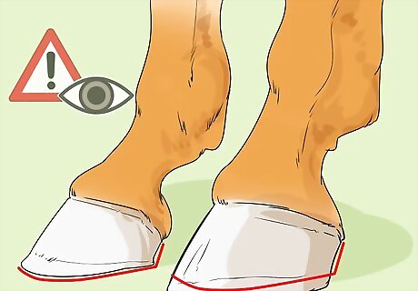 Fix improper trimming. If your horse's hooves are trimmed improperly, it could be causing some discomfort. A horse's gait requires a delicate balance on the ground. If the horse's hooves are trimmed unevenly, it could throw off the horse’s gait and cause some discomfort. For example, when trimming the bottom of a horse's hooves one must make sure that the bottoms are completely level to the ground. Any deviation from parallelism will put an awkward force up through the horse's legs when it takes a step.