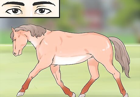 Watch how the horse moves. In order to identify a problem with your horse’s hooves, you should watch how your horse moves. A problem is usually easiest to identify when your horse is trotting, as opposed to walking. This is because a problem will not usually show up when a horse is walking unless it is really bad. In order to figure out if something is off with your horse's gait, you should know what it looks like when it is correct. In addition, become familiar with how your horse's whole body moves when it walks and trots and how it sounds when the horses hooves hit solid ground. These things can help you identify when there is a problem. Be sure to ask a knowledgeable friend, farrier or veterinarian for help if you are unsure about whether your horse is sore or not. Don’t wait to see if the problem gets worse.