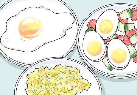Prepare eggs for breakfast. Having eggs for breakfast provides your brain with all kinds of benefits. Eggs are a great source of protein, as well as choline, a B vitamin found in eggs. Choline improves brain function and memory, while protein stabilizes your blood sugar, which will help you concentrate. Scramble, boil, or cook your eggs sunny side up. Omelets, made with vegetables like spinach, broccoli, and tomatoes, are a great way to provide nutrients to your brain in the morning. For example, spinach and broccoli are great sources of vitamin B. Try adding a side of avocado or guacamole to your eggs. Avocados are a healthy, monounsaturated fat. Monounsaturated fat contributes to healthy blood flow, and a healthy blood flow means a healthier brain.