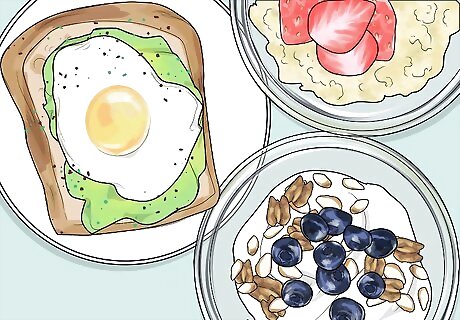 Eat a balanced breakfast. Remember to eat a balanced diet. A balanced diet will provide you and your brain with the energy it needs to function properly. A balanced diet consists of a meals that are 45 percent carbs, 30 percent protein, and 35 percent healthy fats like avocados and nuts. Make sure you eat a balanced diet by eating a combination of oatmeal or whole grain bread with eggs, fruits, nuts, or avocados for breakfast.