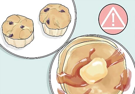 Watch out for processed gluten-free breakfast foods. Gluten-free diets have become very trendy in the last couple of years, but there is no reason to eat gluten-free unless you have celiac disease. However, consuming many of the gluten-free processed breakfast foods can cause potential problems. For example, rice, potato, and tapioca flour replace the wheat flour in these products. These flours are shown to have a high glycemic index. This means they raise blood sugar rapidly. A rapid rise in blood sugar can cause an insulin spike and a resulting sugar crash. The side effects of a rapid rise in insulin are hindered focus, memory, and brain function. Watch out for gluten-free pancakes, muffins, and other baked goods.