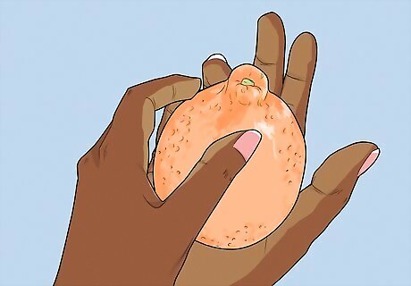 Look for a soft fruit. The fruit should feel firm and heavy in your hands. Look for tangelos that are mostly unblemished. A few green spots close to the stem are okay, but there shouldn’t be any mold or soft spots.