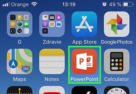 Open PowerPoint on your iPhone or iPad. It’s the red icon with a “P” on a sheet of paper. You’ll usually find it on the home screen.