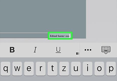 Type the text for your footer. If you need to resize the footer to accommodate more text, tap outside of the footer, tap the footer once, then drag the edges to the desired width.