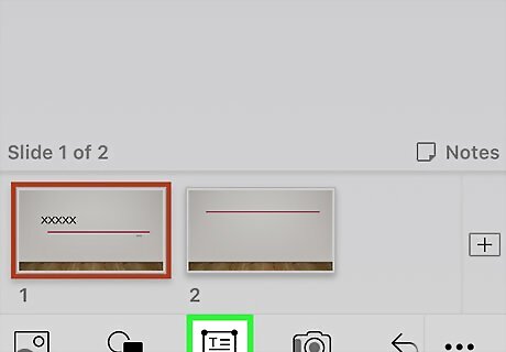 Tap the text box icon. It’s the square with the “T” and horizontal lines inside. Two options will appear at the bottom of the screen.