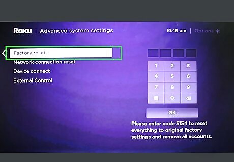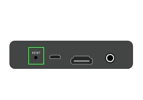 Locate the pin-sized button labeled "RESET" on the back of the Roku device.