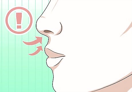 Avoid breathing in while you're spraying. It's also not a great idea to breathe in the tanner you're spraying. Take a deep breath before you start spraying, and try to hold it the whole time you're spraying. If you can, move out of the cloud of tanner a little before taking a deep breath.